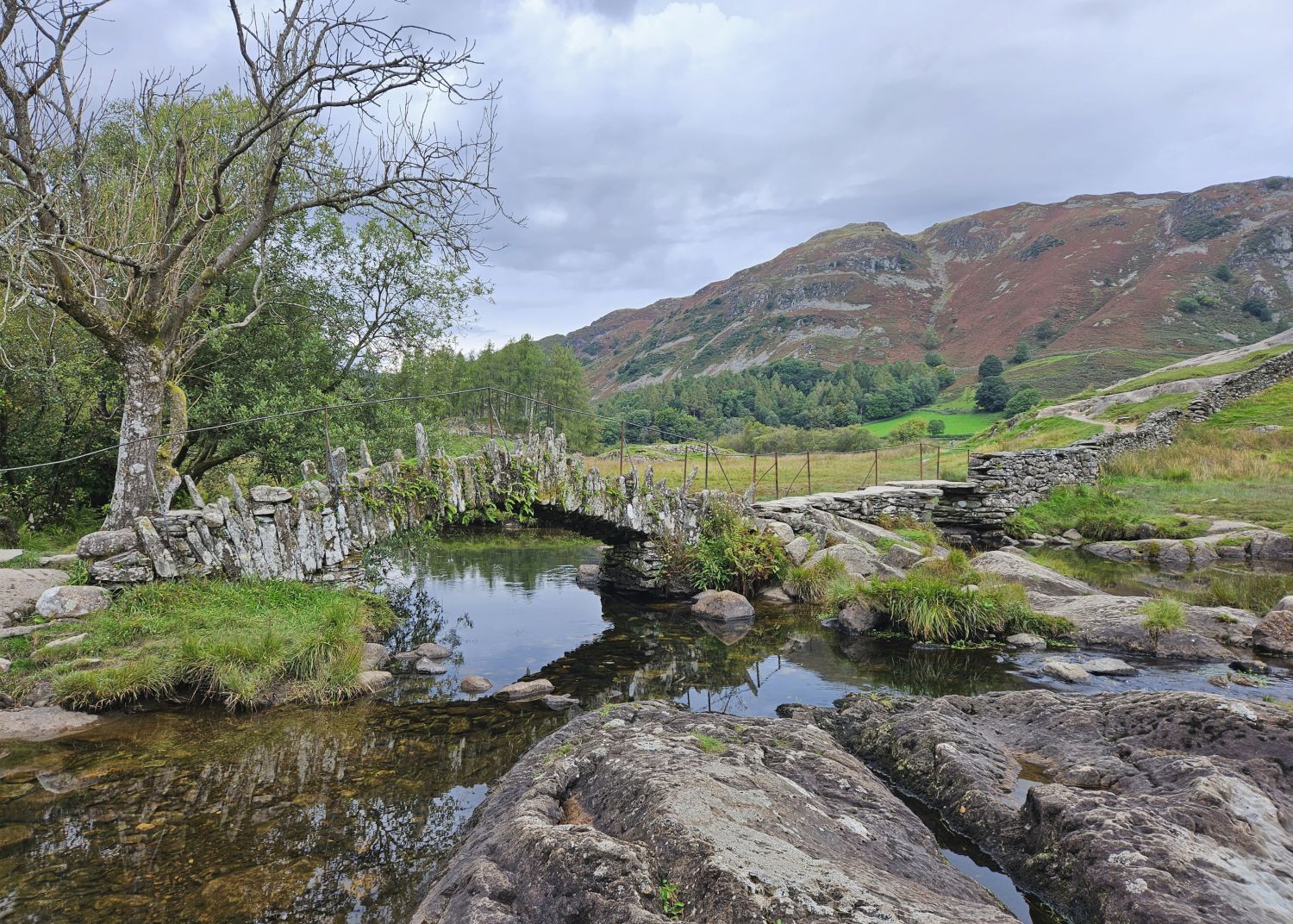 I didn’t take many photos on the next section of the walk. With plenty of fuel in the old belly, and the thought of a serious downpour later, I decided to push on at a faster pace through the next village of Elterwater and into the neighbouring valley of Little Langdale. I’m now at the iconic Slater Bridge, which spans the River Brathay. I had received some drizzle from the heavens as I left Elterwater, but it’s eased off now.