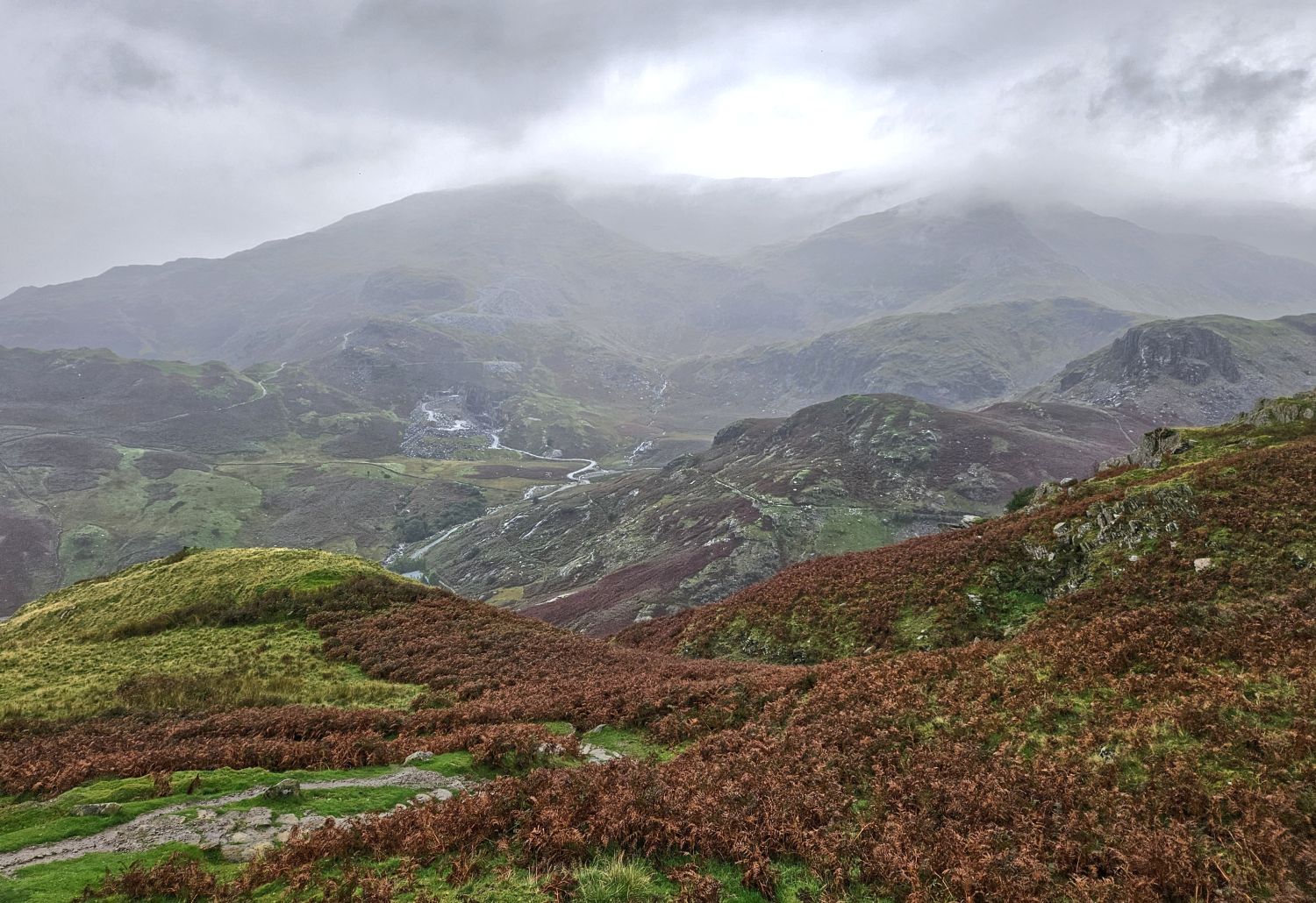 It’s very atmospheric looking back and seeing the route I had taken through the valley of Tilberthwaite.