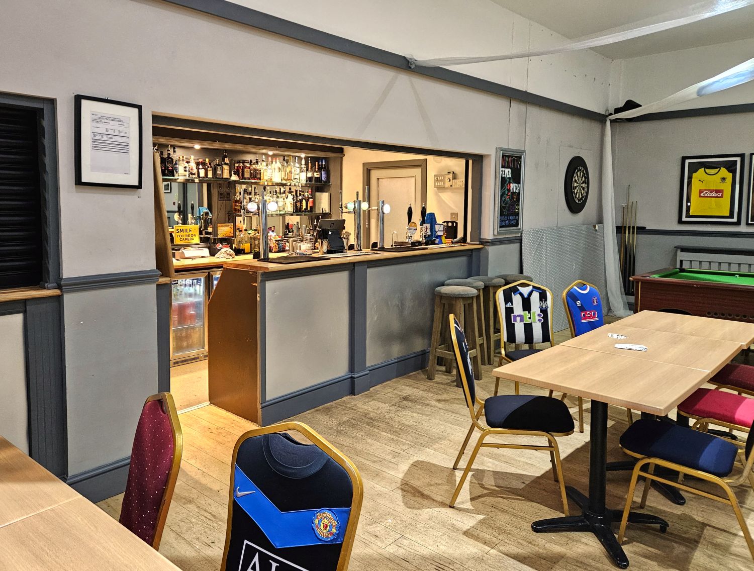 The look on the young lad’s face when I walked in! I initially wouldn’t go into the bar area due to being so wet and seeing the laminate flooring throughout, but the lad insisted and brought me a plastic chair to drip from. He was brilliant, and continued to look after me through the evening, providing towels and gallons of coffee and juice. I cannot thank the club enough for putting up with me and providing such wonderful hospitality.