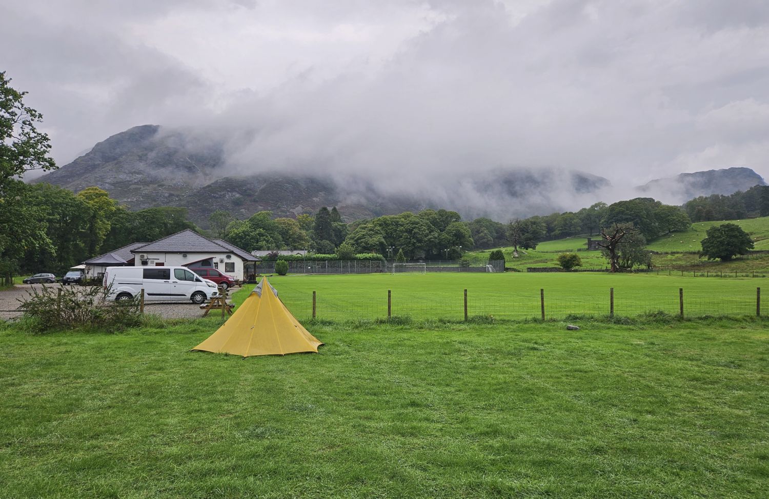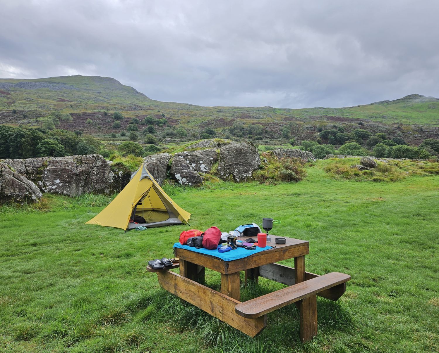 After sorting my bedding out and having a very hot shower, I headed into Coniston for an Indian takeaway. Thankfully the rain hadn’t got any worse, so I’m now able to enjoy the evening more comfortably under this canopy outside.