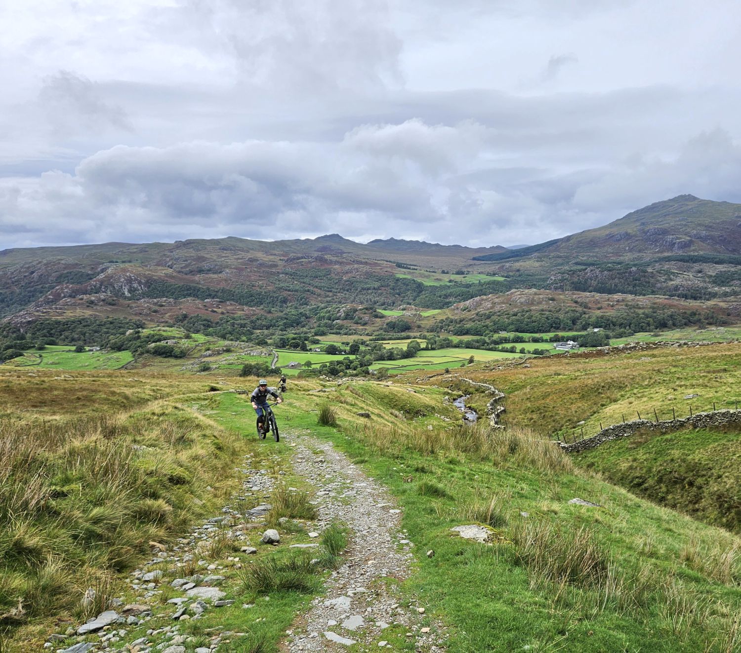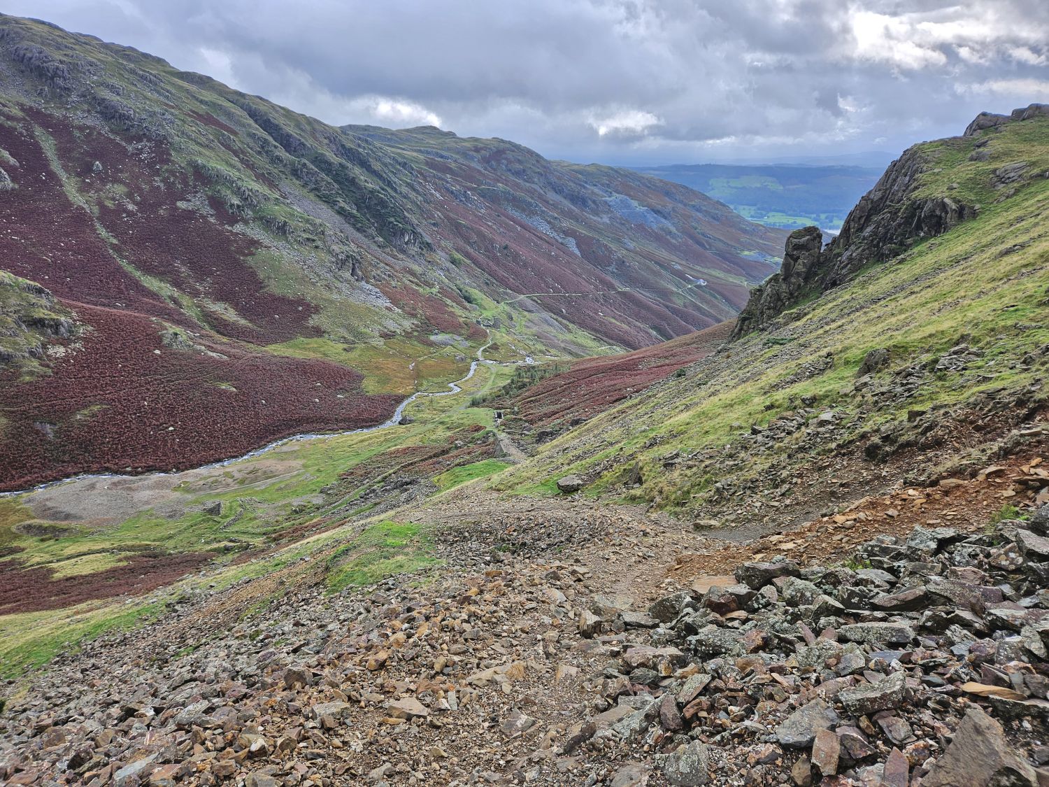 It’s nice to be dropping down into the Duddon Valley — I can just about see the whole of the second part of the route as it descends its way down to the hamlet of Seathwaite. Walna Scar Road is much easier now as it leads the way to the old quarries, so I can make good progress.