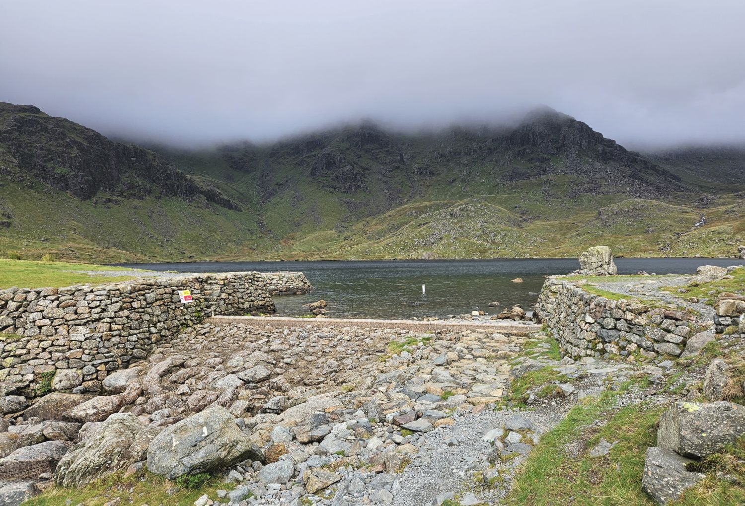 I’m now at the base of my first steep climb of the day, so I took the opportunity to rest beside the gushing cascades of Red Dell Beck and admire the surroundings. Looking back, I can see the sun trying to brighten up the valley, but I feel these will be rare moments as the forecast is for a very cloudy day. It is not raining and the air is very still, and I’ve not seen another person since leaving Coniston, so it feels eerie yet peaceful. I’m certainly feeling the loneliness and starting to crave some company.