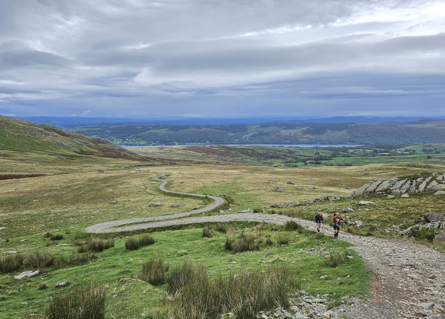 Due to my early start from Coniston I didn’t see another person in the Coppermines Valley, but as I ascend the steepest section of Walna Scar Road my progress is slowing, and walkers, runners, and bikers are arriving behind me and passing in numbers.