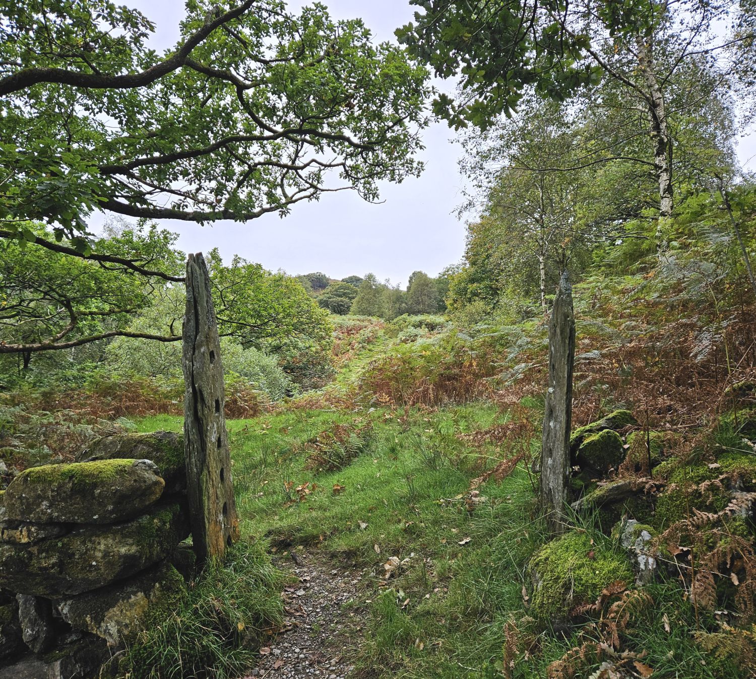 I’m now on my last mile to Boot, but I have this small hill (How) to climb to complete today’s walk. It’s nothing of a climb really — not usually — but when your legs are tired at the end of the day, and the last few miles have been level walking, this now feels like a mountain. I will visit St Catherine’s Well, which is hidden amongst the bracken, before heading for Hows Wood.