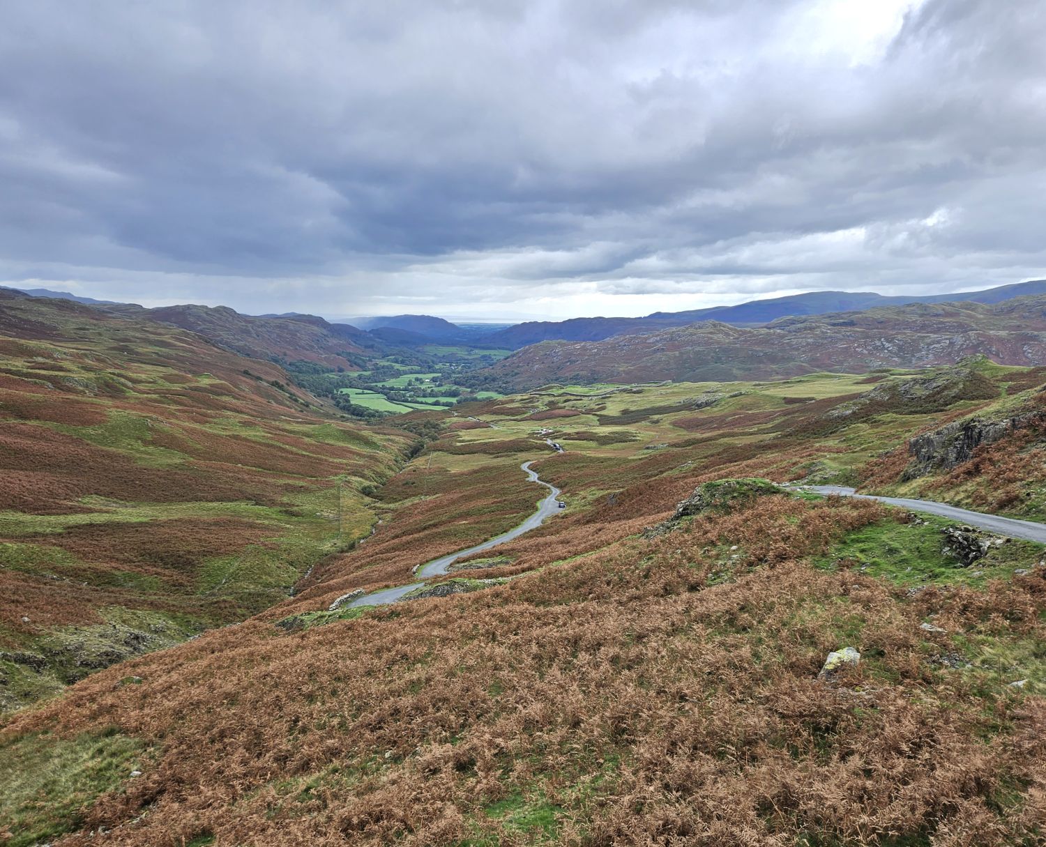 Reaching Hardknott Pass came quicker than I thought, and I’m now looking down the next valley of Eskdale. My whole route to the village of Boot is clear in front of me, which includes Hardknott Roman Fort not too far away.