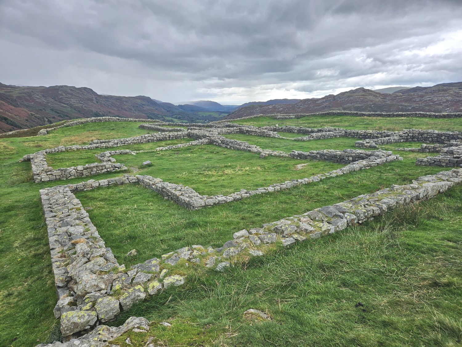 Hardknott Roman Fort is a good place to rest and have lunch and also, if time allows, explore the ruins — there are information boards dotted about that provide a fascinating insight into the layout of the fort.
