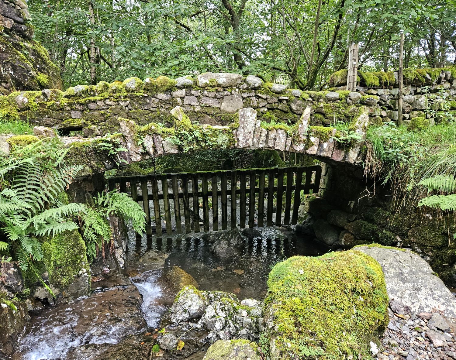 I’ve now reached the valley bottom and am stood admiring Jubilee Bridge. A lovely little bridge, isn’t it? It also seems to defy gravity, but that’s because it is made from a steel arch and clad in stone to blend in with the surroundings. It was built to commemorate the Queen’s Silver Jubilee in 1977 by Malcom Guyatt of Waberthwaite. This is one of many wonderful gems on Day 11 of the Lakeland Way.
