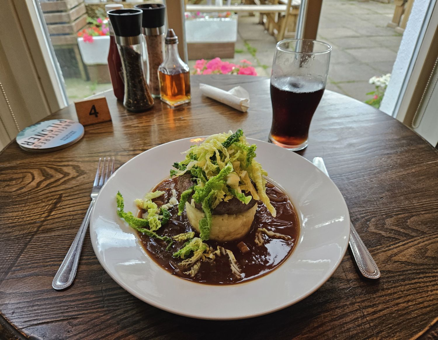 I thought I would take the short walk to the Boot Inn and treat myself to a meal. What you’re looking at is a very posh version of bangers and mash, with a sprinkling of cabbage. Thankfully I got well stocked up with snacks from the campsite shop before it shut!