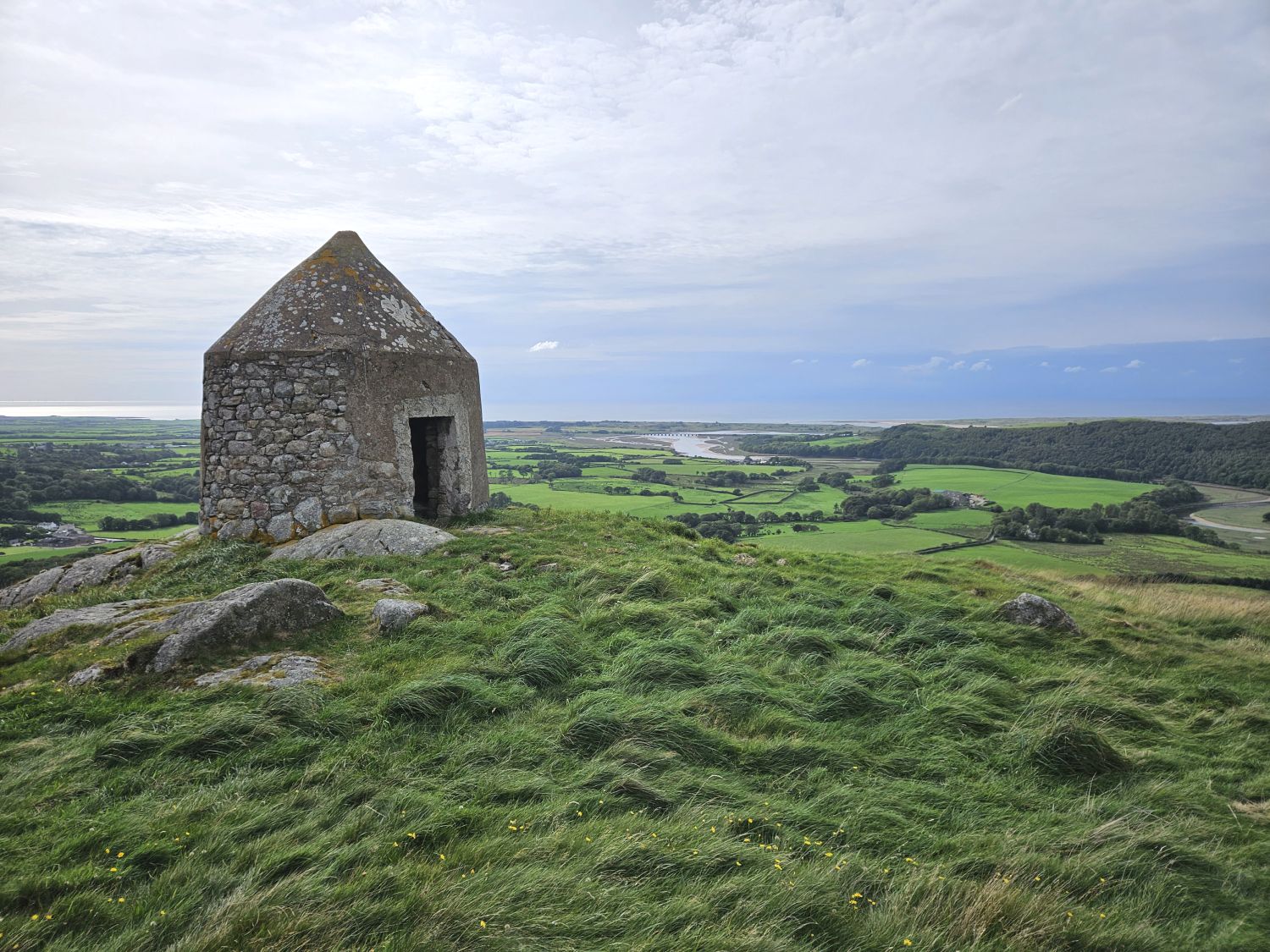 I’ve arrived at the Romano-British farmstead on Barnscar, and ahead lies my final ascent of the trip — a small, unnamed hill forming a continuation of the ridge towards the Irish Sea. It’s home to Stainton Tower and offers a wonderful view of the sea and the estuary crossing to come.