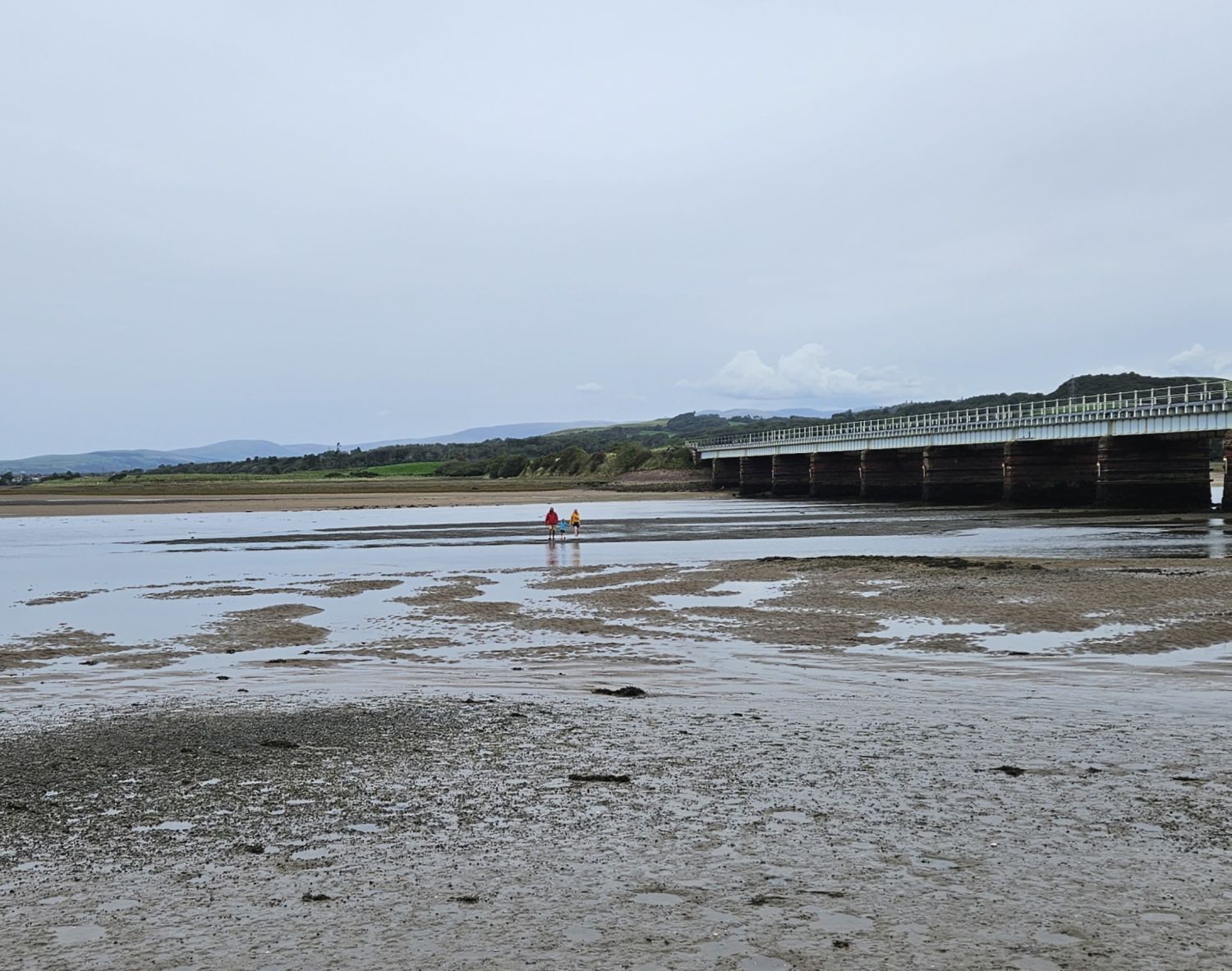 I’m sat on the south bank of the estuary at Eskmeals Viaduct, and making their way across the tidal ford towards me are my family and a good friend, John Falcus — John was the first person to complete the Lakeland Way and has kindly travelled from the North East to walk the final mile with us.